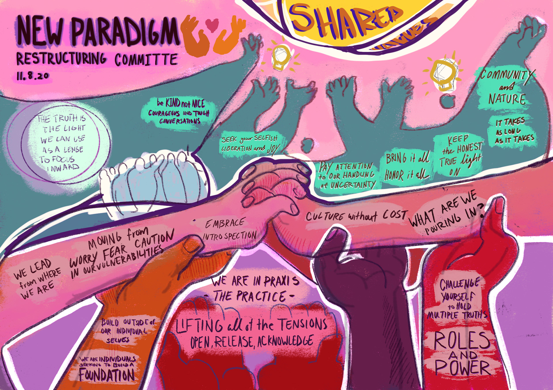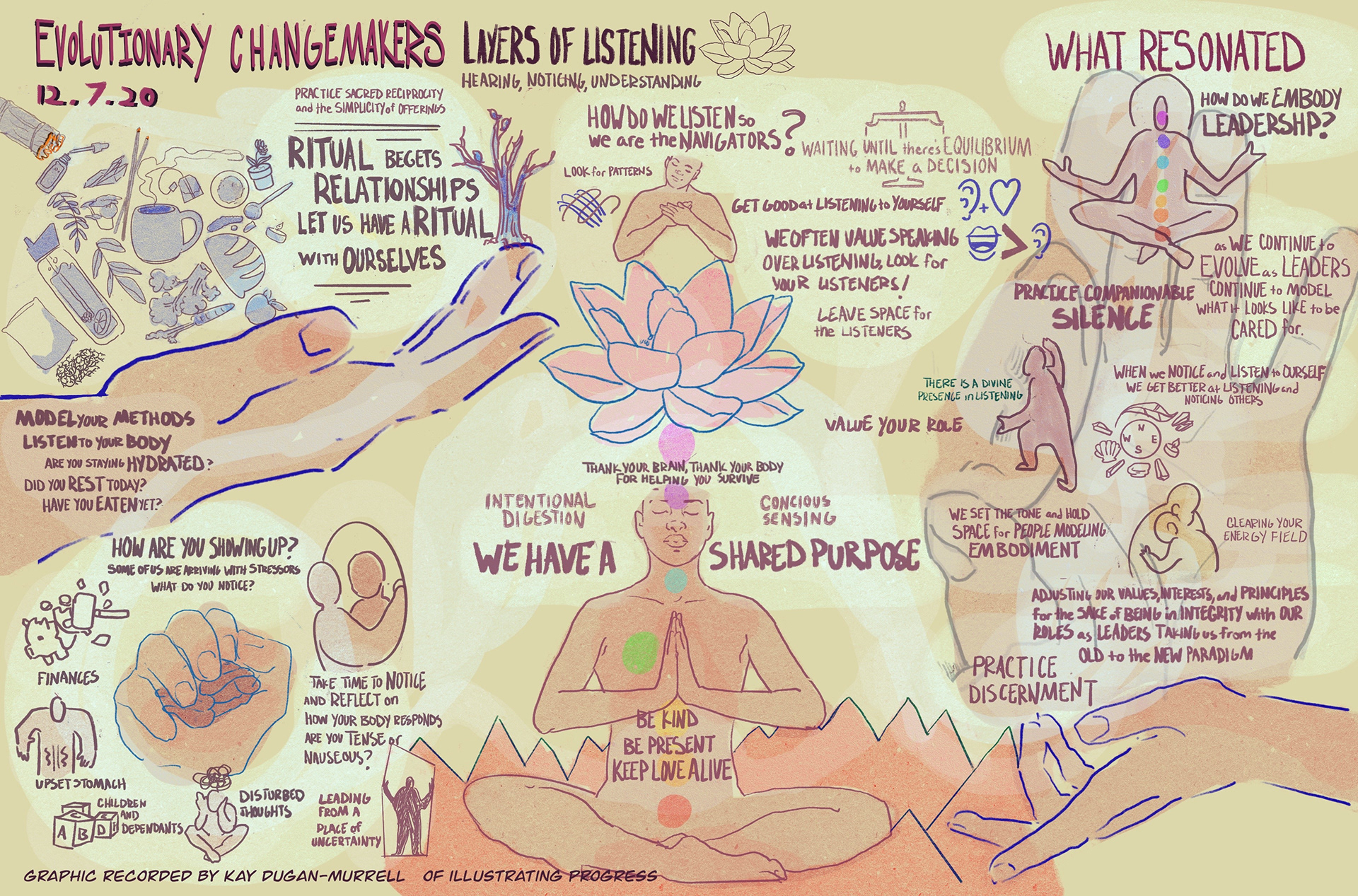 Solo graphic recordings/murals/ and Illustrations Created for the Visualization of high-level meeting themes and concepts.